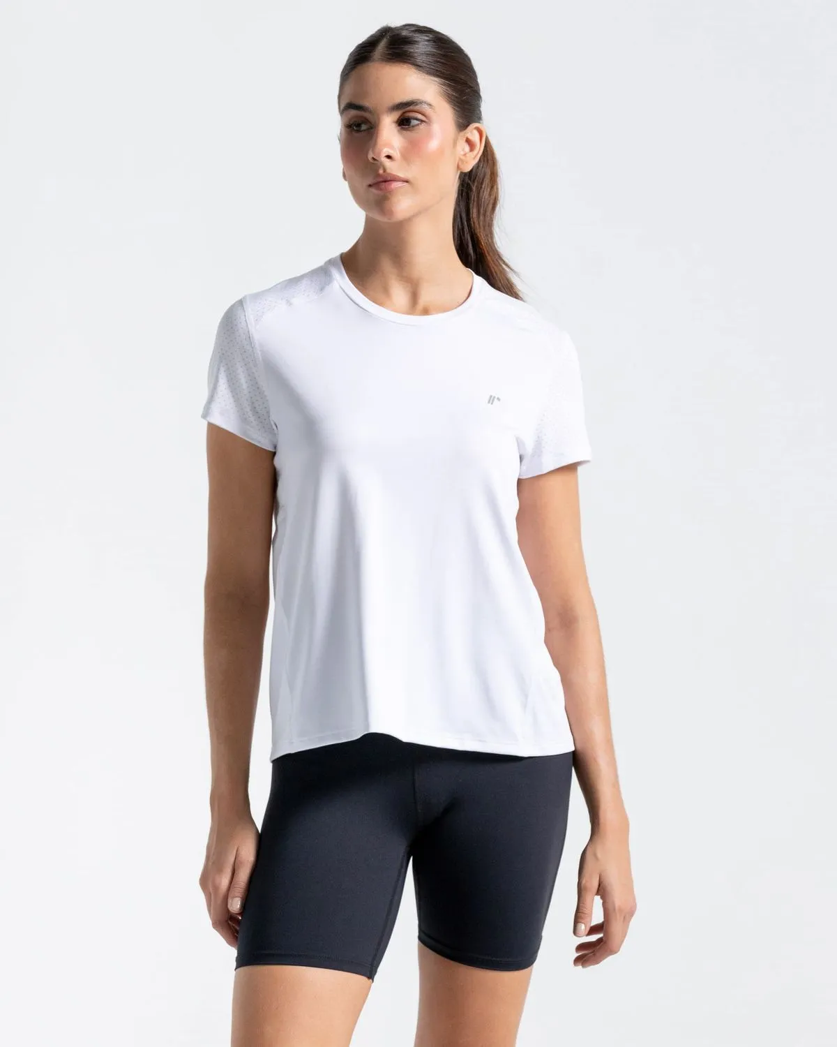 La Camiseta Equilibrio Blanca combina diseño moderno, frescura y funcionalidad, ideal para entrenamientos exigentes o para un look deportivo casual. Su silueta en línea “A” ofrece un ajuste cómodo que estiliza sin limitar el movimiento, mientras que los paneles en malla transpirable mejoran la ventilación y ayudan a mantener el cuerpo fresco durante la actividad física.