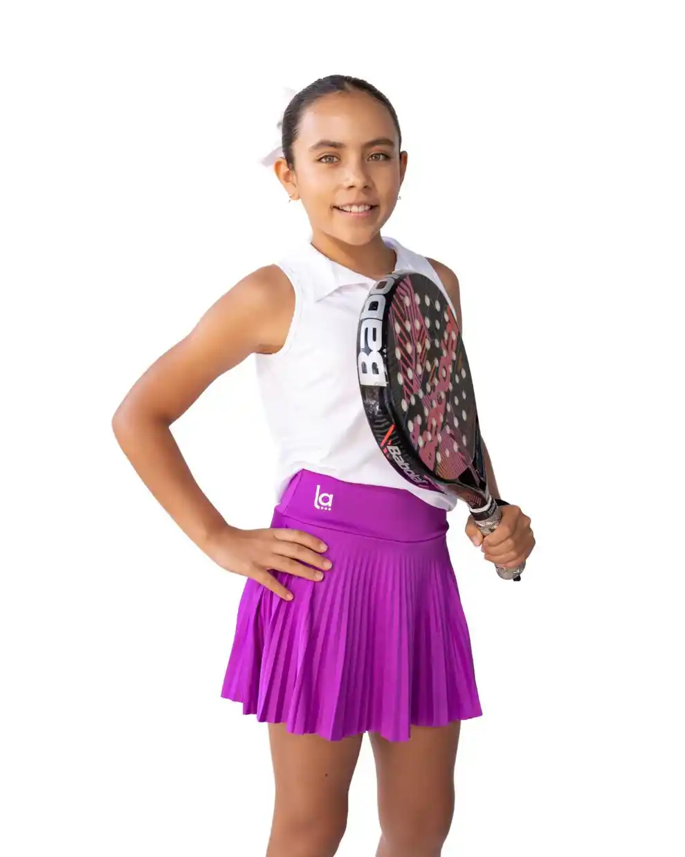 La Falda Plisada Violeta para Niña de LUANA ACTIVE ofrece la combinación perfecta de comodidad, libertad de movimiento y diseño moderno. Con pretina alta para un ajuste seguro y short interno para mayor cobertura, es ideal para que las niñas disfruten de cada entrenamiento o juego con confianza.