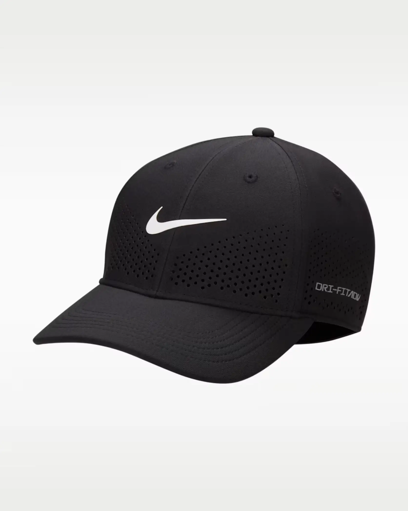 La Gorra Nike Swoosh Dri-FIT ADV Club Negra es perfecta para deportistas que buscan comodidad, rendimiento y estilo profesional en cada entrenamiento o partido.