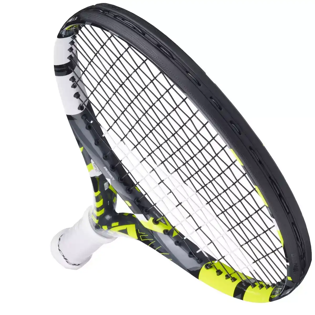 Un marco aerodinámico, que integra el bumper y los ojales, aumenta la velocidad de la cabeza de la raqueta, facilitando los golpes de efecto.