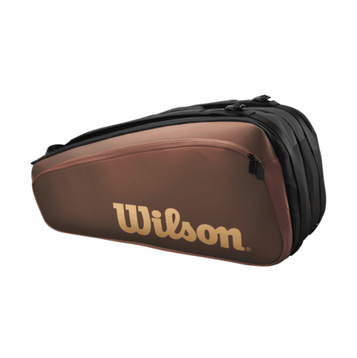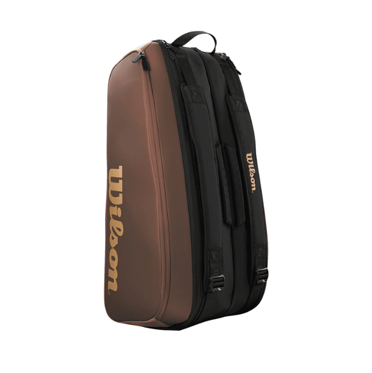 Uno para el tenista de alto nivel. Esta raqueta Wilson tiene todo el atractivo limpio de nuestra franquicia Pro Staff con un diseño que combina con la última versión de la raqueta de tenis de alto rendimiento Pro Staff. Hay suficiente espacio para hasta nueve raquetas en los dos compartimentos principales, cada uno de los cuales está termorregulado para proteger de temperaturas extremas y preservar la tensión de la raqueta. Puedes guardar equipo adicional como pelotas y empuñaduras dentro de los grandes bolsillos exteriores. La bolsa está reforzada en los laterales y viene con dos correas de transporte.
